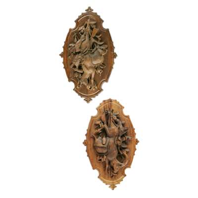 PAIR OF BLACK FOREST CARVED TROPHY PANELS
