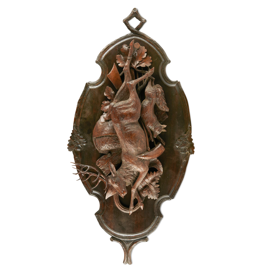 PAIR OF BLACK FOREST CARVED TROPHY PANELS
