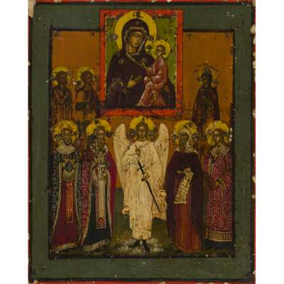 RUSSIAN ICON, THE TIKHVIN MOTHER OF GOD WITH SAINTS