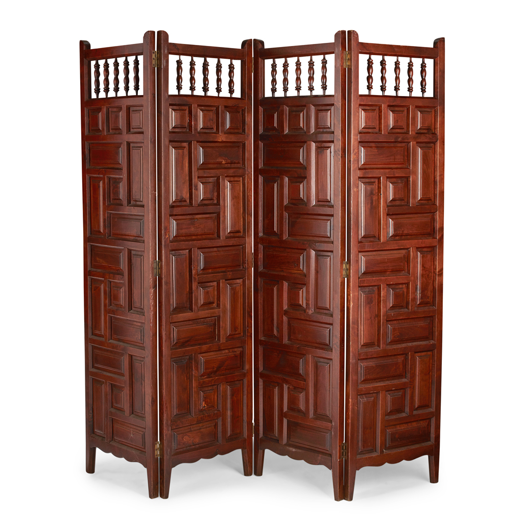 ANGLO-INDIAN TEAK FOUR FOLD SCREEN