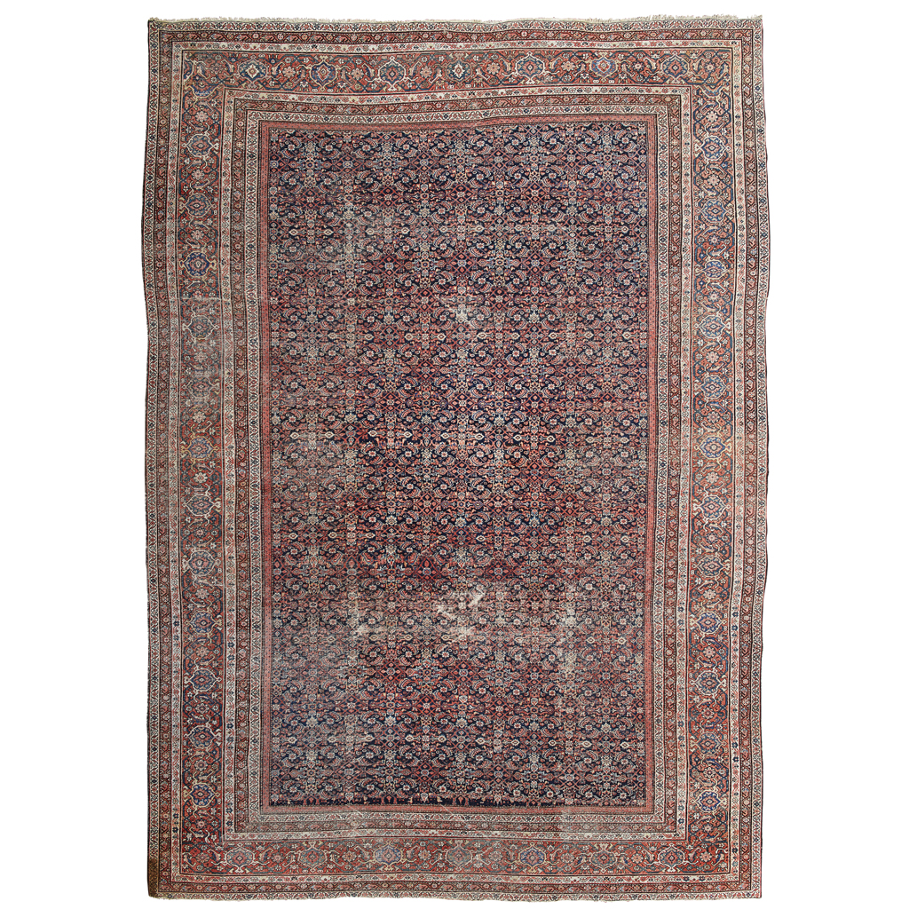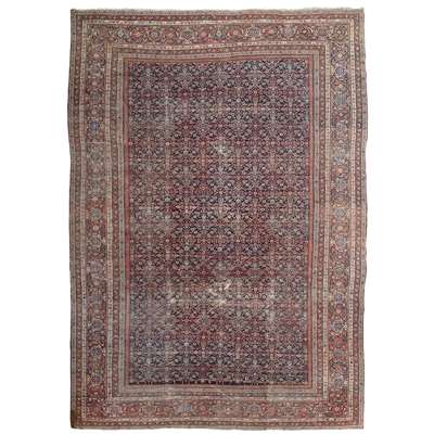 the indigo field with allover herati pattern, within red turtle palmette and vine border