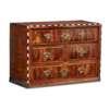 of cubic form, the front with ebony and ivory dash edge moulding, fitted with an arrangement of two short and two long drawers