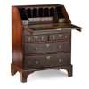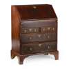 the slant front opening to an interior fitted with pigeon holes and drawers and a leather insert writing surface, above two short and two long drawers, raised on bracket feet