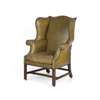 GEORGE III GREEN LEATHER UPHOLSTERED WING ARMCHAIR