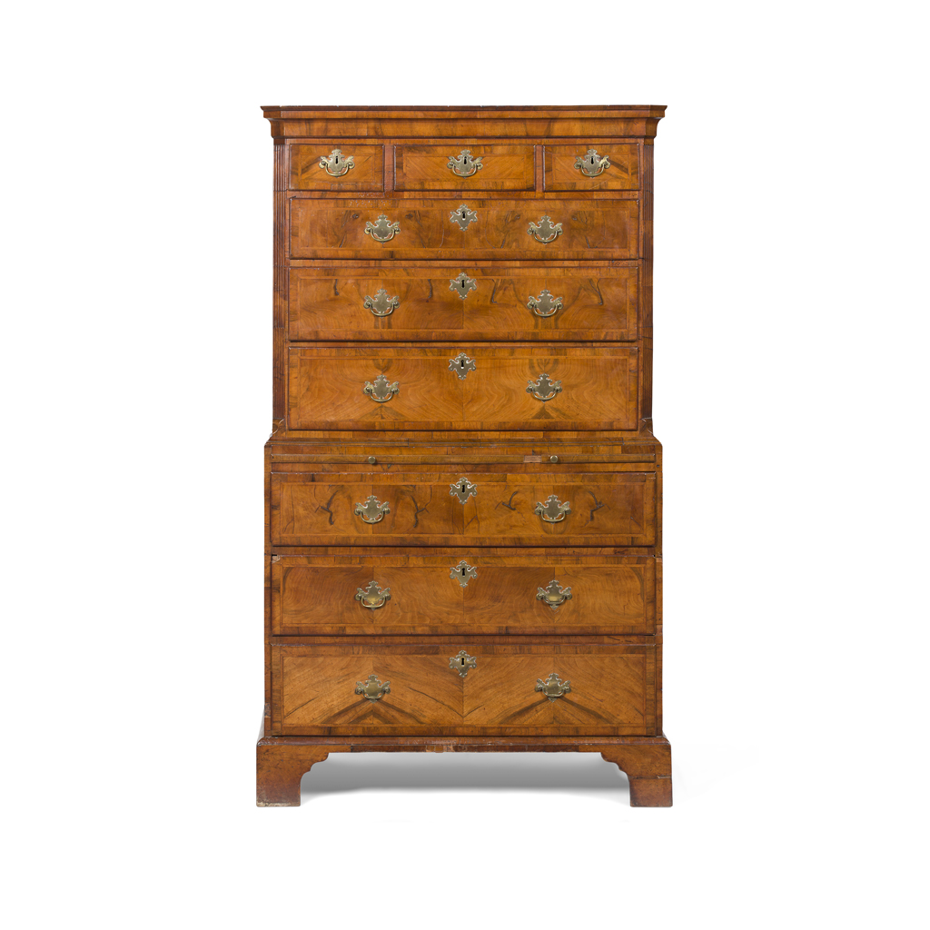 GEORGE I WALNUT CROSSBANDED CHEST ON CHEST
