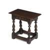 the rectangular plank top with a thumb nail moulded edge above a barb inlay seat rail, raised on turned baluster legs joined by peripheral stretchers
