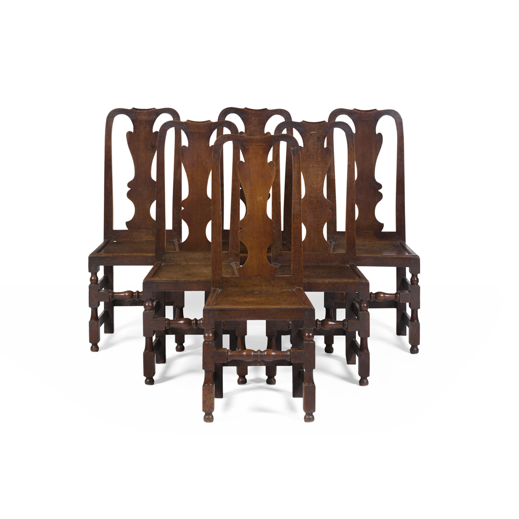 SET OF SIX GEORGE I OAK SIDE CHAIRS