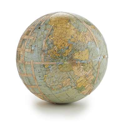 the central printed paper-covered globe raised on an ebonised stand, 52cm high; also a later TERRESTIAL GLOBE, 19cm diameter (2)
