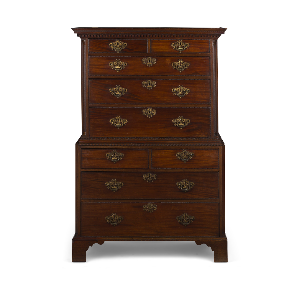 GEORGE III SMALL MAHOGANY CARVED CHEST ON CHEST