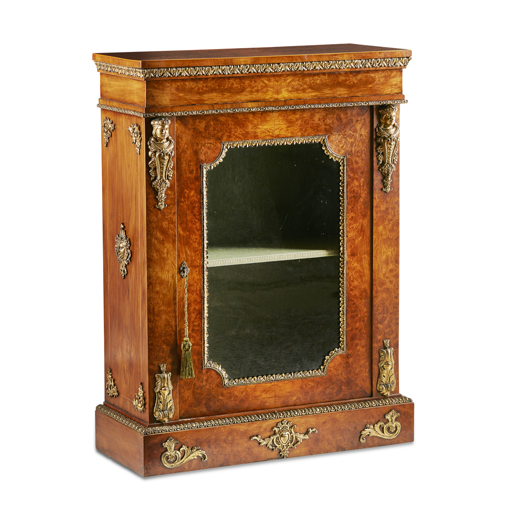 VICTORIAN BURR WALNUT AND WALNUT GILT METAL MOUNTED SIDE CABINET