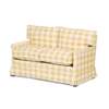 the low loose cushion back above a loose cushion seat and low arms, on mahogany shaped pad feet; in yellow check upholstery