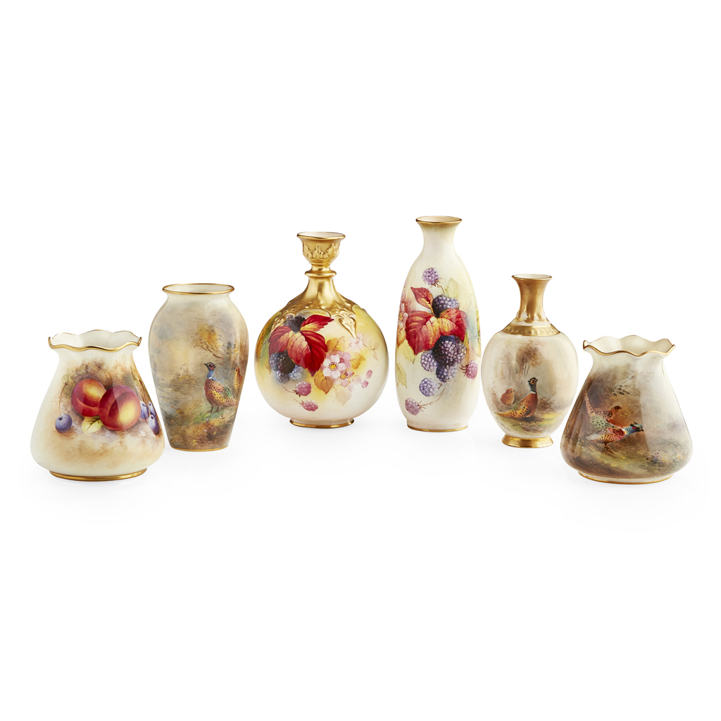 GROUP OF SIX ROYAL WORCESTER PORCELAIN VASES