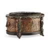of shaped oval form with twin handles and applied figural mounts, with a lift-out liner, raised on rococo style gilt brass feet