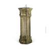 the bronze sundial plate inscribed with the hours, latitude 53, and directional markers, mounted on a hexagonal column carved with quatrefoil and gothic arch panels divided by columns