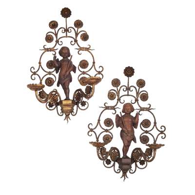 PAIR OF FRENCH WROUGHT IRON WALL APPLIQUES