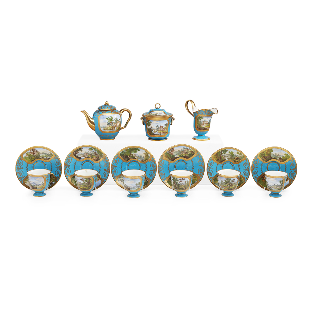 SEVRES OUTSIDE DECORATED PORCELAIN PART TEA SERVICE