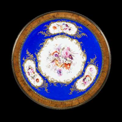 FRENCH TULIPWOOD PORCELAIN MOUNTED GUERIDON