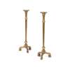 the trumpet form circular tops with beaded edges, on fluted tapered columns, raised on leaf carved scrolling tripod legs (2)
