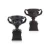 of typical form, painted black, raised on square moulded plinth bases (2)