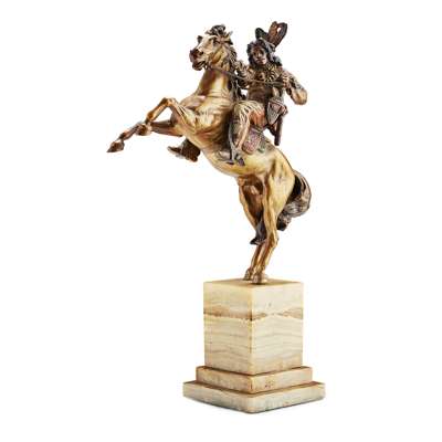 modelled on a rearing horse, on an onyx plinth base, unsigned