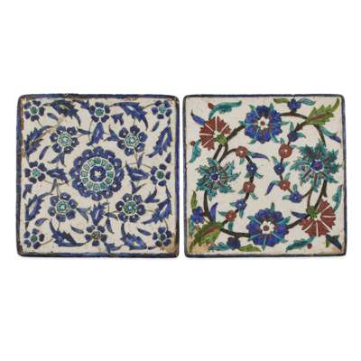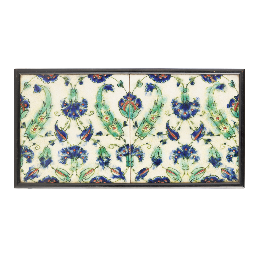 FRAMED IZNIK-STYLE TWO TILE PANEL, ATTRIBUTED TO PILKINGTON'S ROYAL LANCASTRIAN