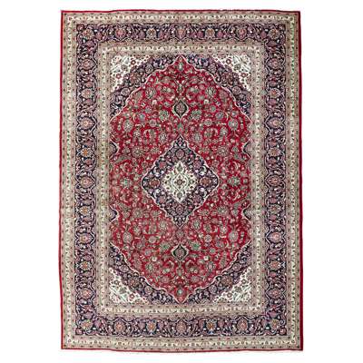 the red field with indigo and cream medallion, similar spandrels, within indigo border