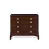 the rectangular top with canted fore corners above a pair of short drawers and three long graduated drawers, flanked by canted angles with boxwood stringing, raised on hipped shaped bracket feet
