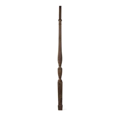 one pair with fluted columns on baluster turned bases, 217cm high; the other pair with reeded tapered columns above wheat and leaf carved fluted baluster bases, 216cm high (4)