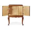 CONTINENTAL WALNUT, BIRCH AND STAINED LEATHER CABINET ON STAND