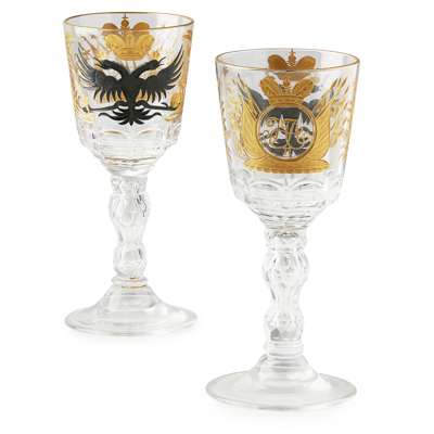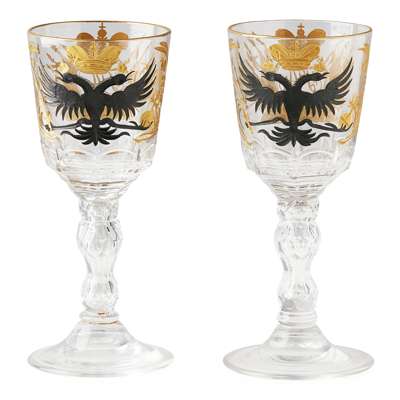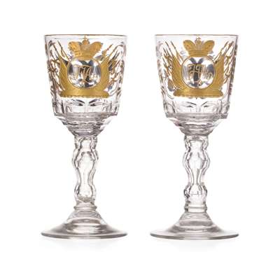 PAIR OF RUSSIAN CUT AND ENGRAVED WINE GLASSES, THE IMPERIAL GLASS MANUFACTORY, ST PETERSBURG