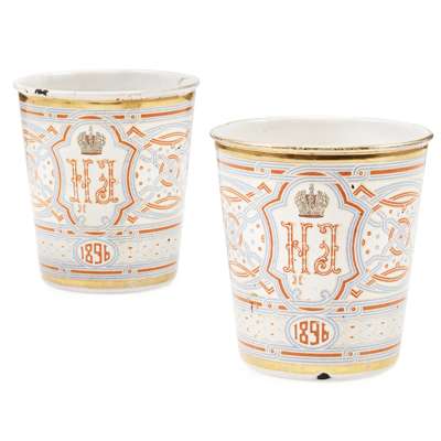 PAIR OF RUSSIAN NICHOLAS II CORONATION BEAKERS