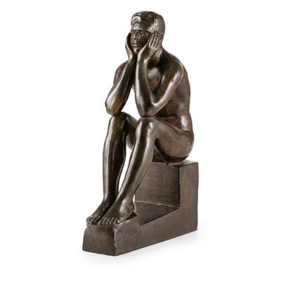 cast as a seated male nude, with his head rested in his hands, signed G. H. VUERCHOZ/ 3/10, with foundry stamp