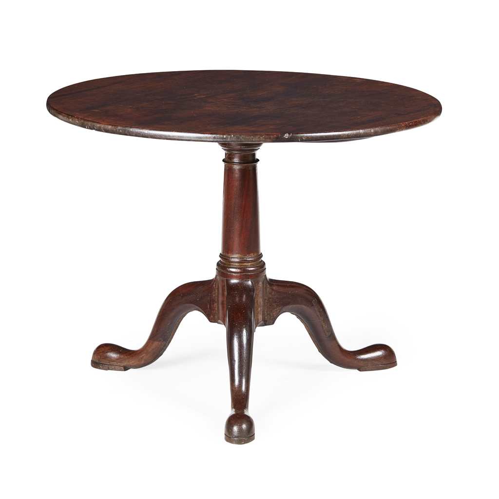 LARGE GEORGE II MAHOGANY TILT TOP TRIPOD TABLE