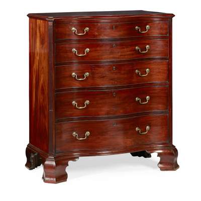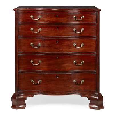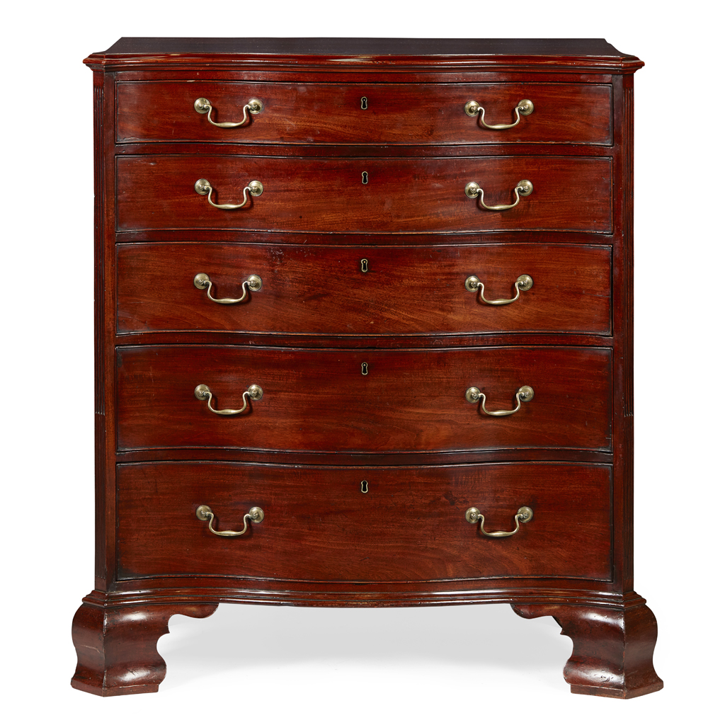 FINE GEORGE III MAHOGANY SERPENTINE TALL CHEST OF DRAWERS