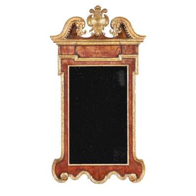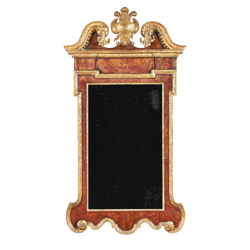 GEORGE III WALNUT AND GILT GESSO MIRROR