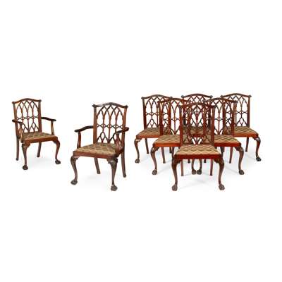 SET OF EIGHT IRISH MAHOGANY 'GOTHICK CHIPPENDALE' STYLE DINING CHAIRS