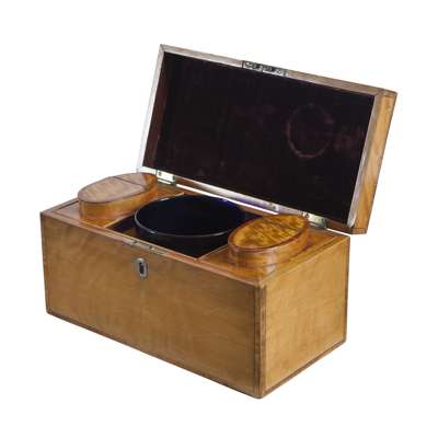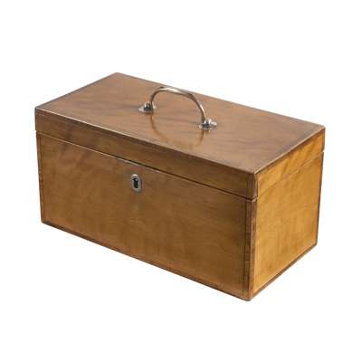 GEORGE III SATINWOOD AND CROSSBANDED TEA CADDY
