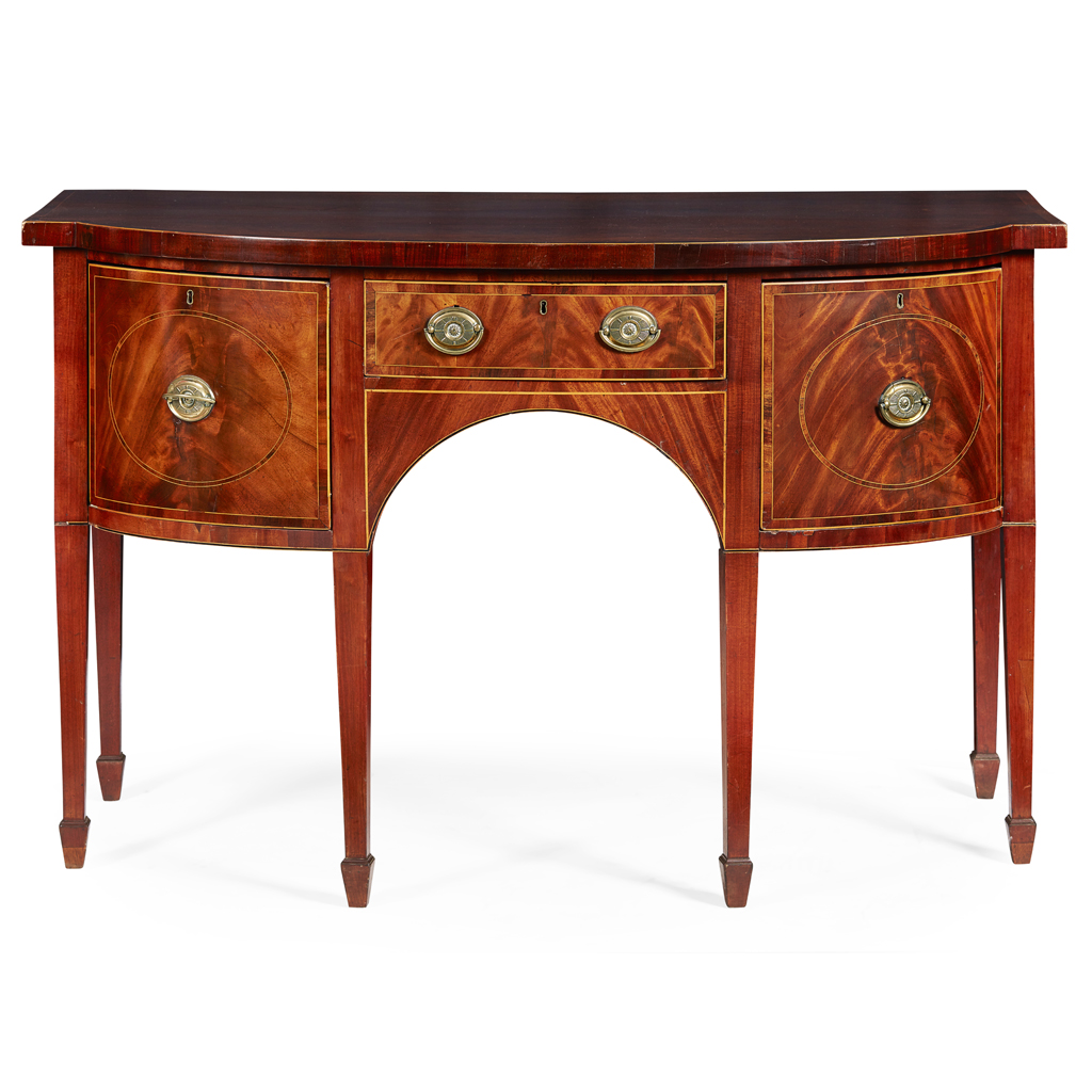 GEORGE III MAHOGANY AND ROSEWOOD BOWFRONT SIDEBOARD