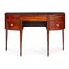 of semi-bowed form, with central panelled drawer flanked by two deep drawers and corresponding panelled sides, raised on square tapering legs