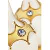 of bottle form with pointed gilt stoppers, mounted with a gilt metal collar with porcelain roundels of birds, raised on a gilt metal circular foot with rope twist detail, retailer's mark LEUCHARS/ 38 PICCADILLY/ LONDON (2)