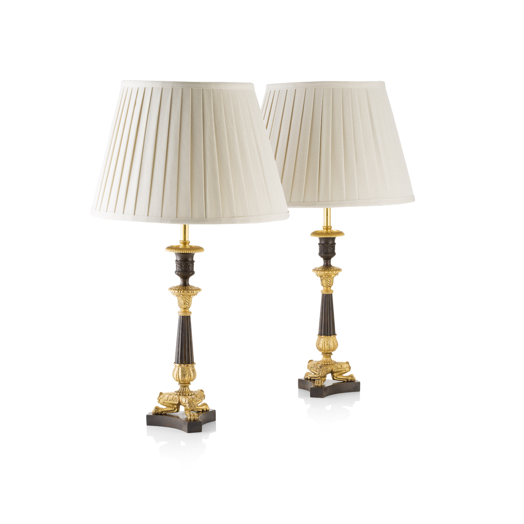 PAIR OF REGENCY PATINATED AND GILT BRONZE TABLE LAMPS