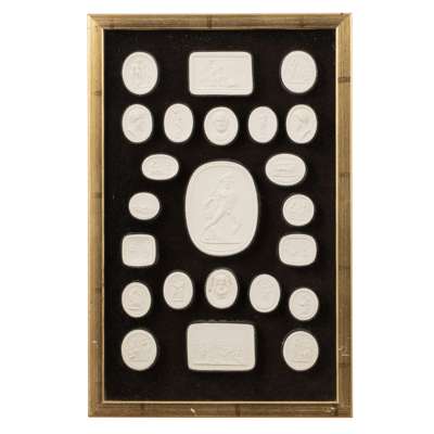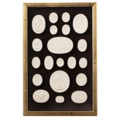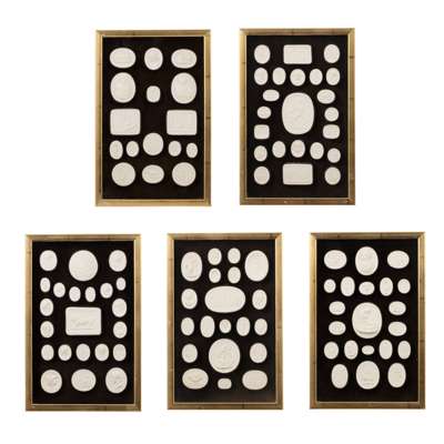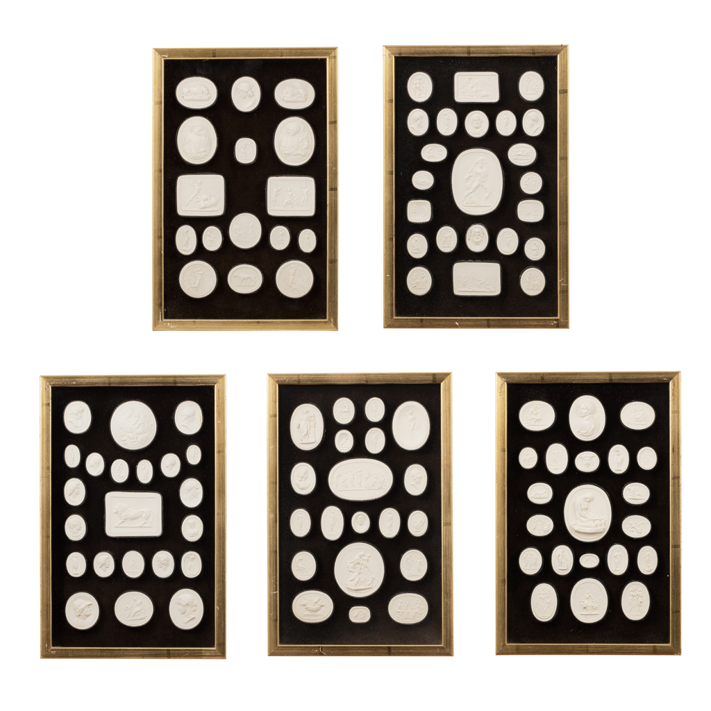 comprising 102 intaglios of various shape and size, mounted in five shadowbox gilt frames (5)
