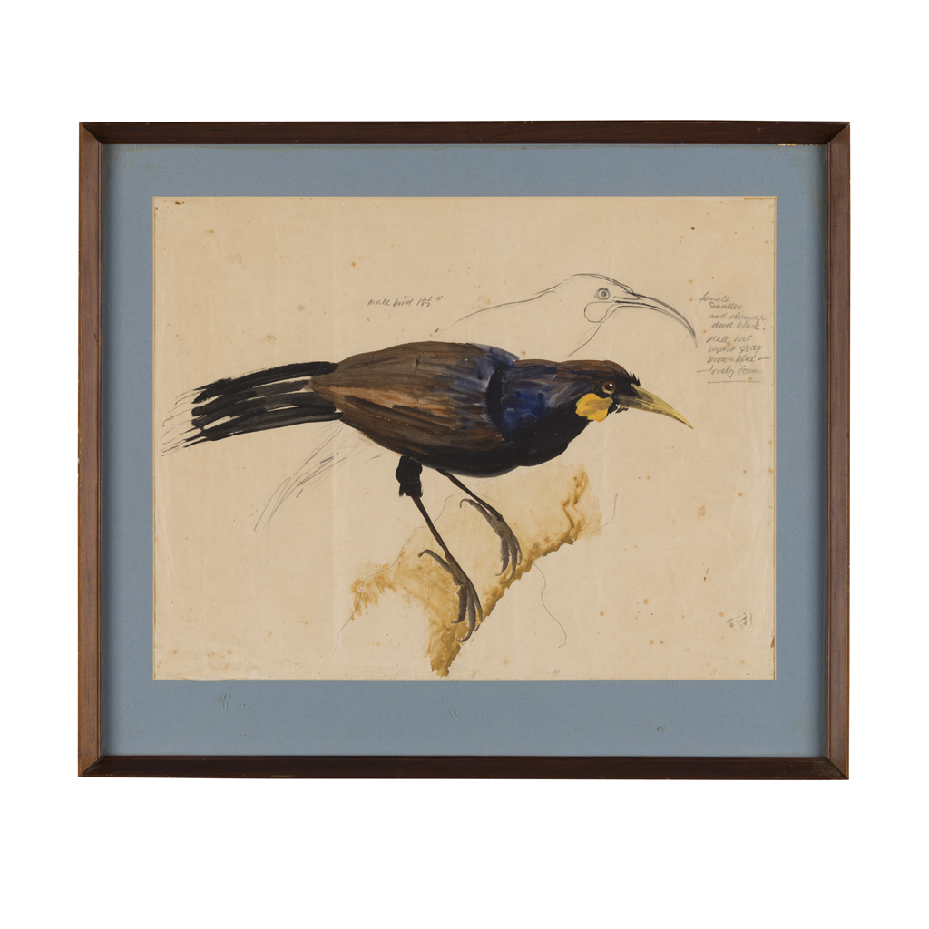 inscribed with details of the bird's appearance, pencil and watercolour