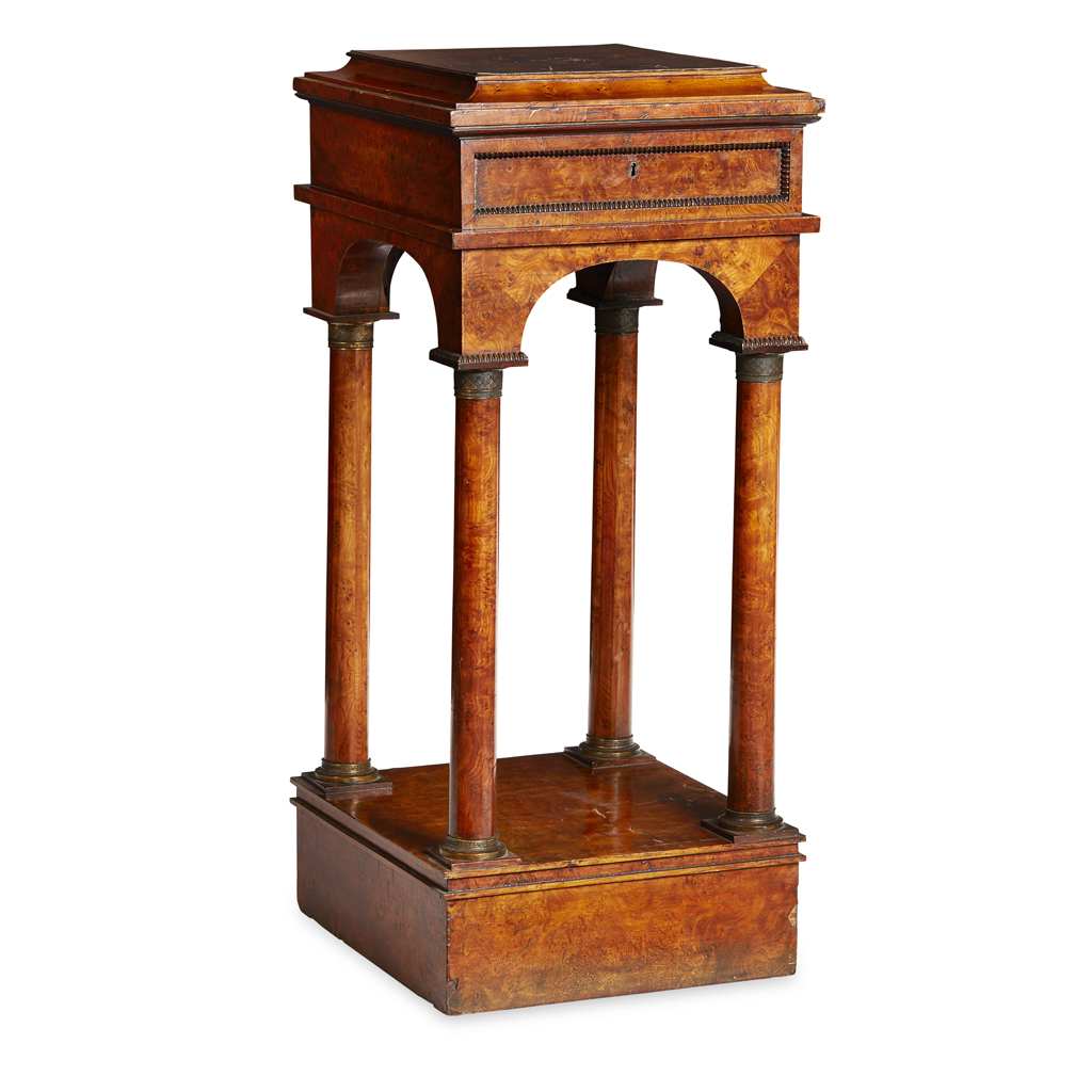 SCOTTISH GEORGE IV BURR WALNUT AND ELM SCULPTURE STAND, ATTRIBUTED TO WILLIAM TROTTER