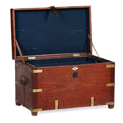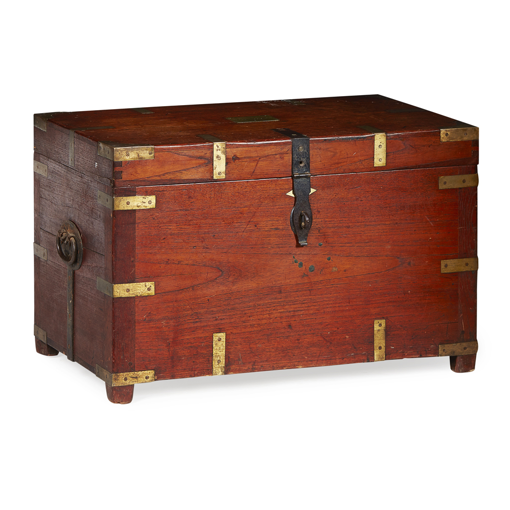 ANGLO-INDIAN CAMPHORWOOD AND BRASS-BOUND MILITARY CHEST