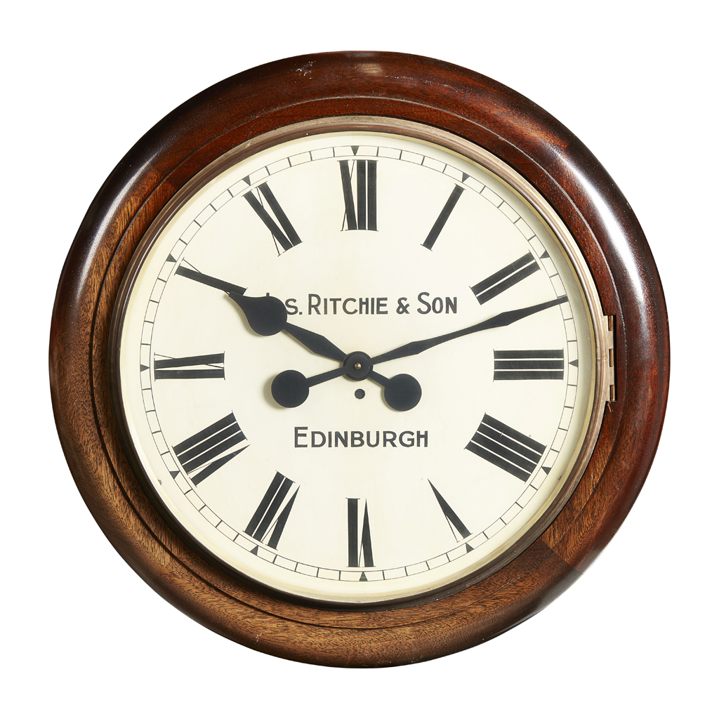 MAHOGANY STATION MASTER'S CLOCK, JAMES RITCHIE & SON, EDINBURGH