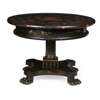 the circular top decorated with phoenix, chrysanthemum, peony and prunus, above a frieze with a single drawer, raised on a fluted tapered column and quadriform base with carved paw feet