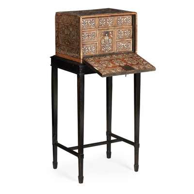 INDO-PORTUGUESE BONE, IVORY AND HARDWOOD TABLE CABINET Y
