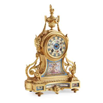 FRENCH GILT BRONZE AND PORCELAIN MOUNTED MANTEL CLOCK