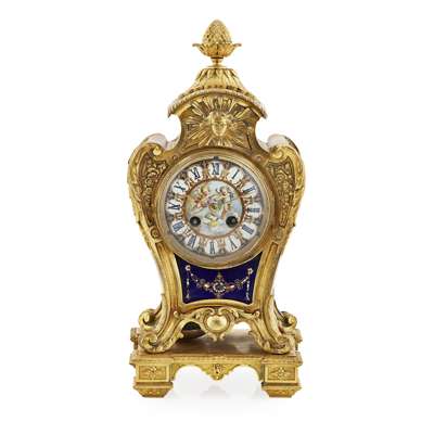 FRENCH PORCELAIN MOUNTED ORMOLU MANTEL CLOCK